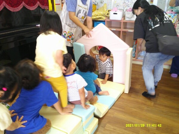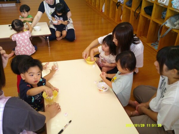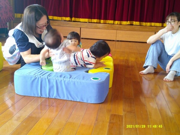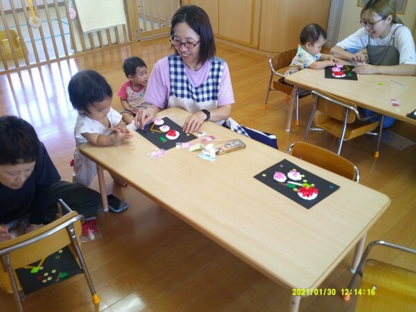 9/16〜19 4日間にわたり、保育参観(3歳未満児)が行われました。大好きなお母さん お父さんと一緒に運動遊びや製作等を行ないました。お友だちのお母さんの膝の上で活動をする子どももいました。お父さんの参加も多く家庭での様子も垣間見ることも出来ました。