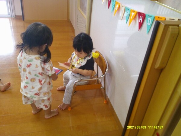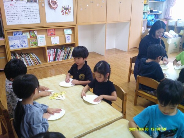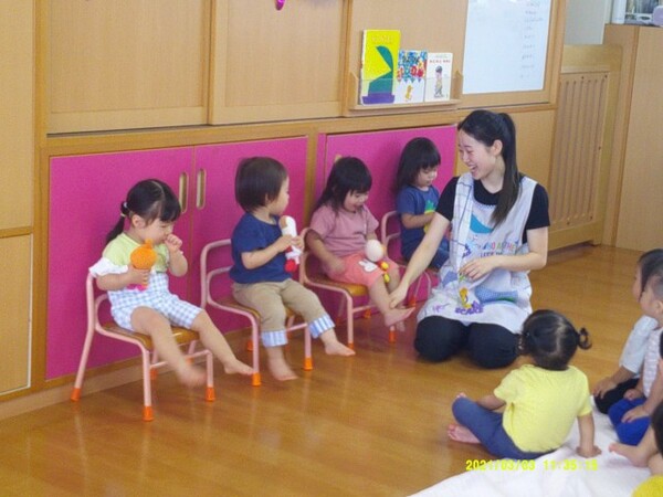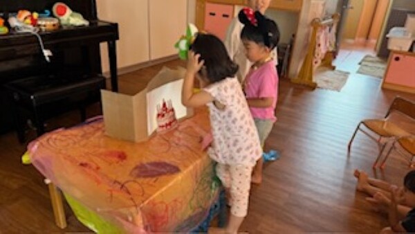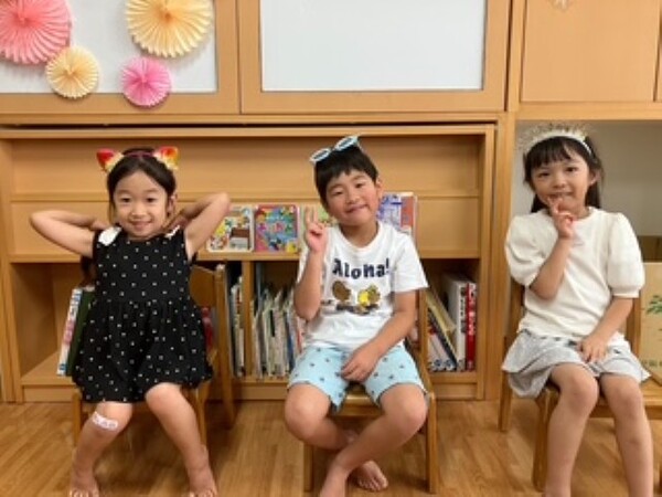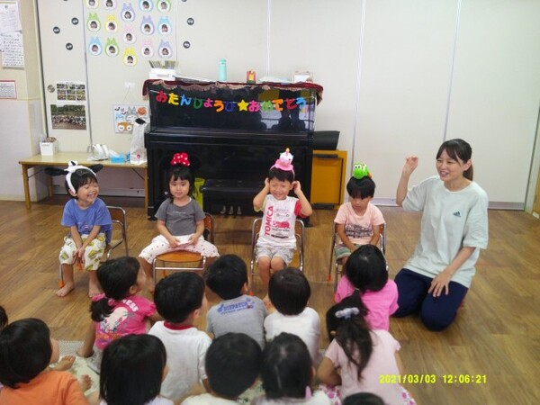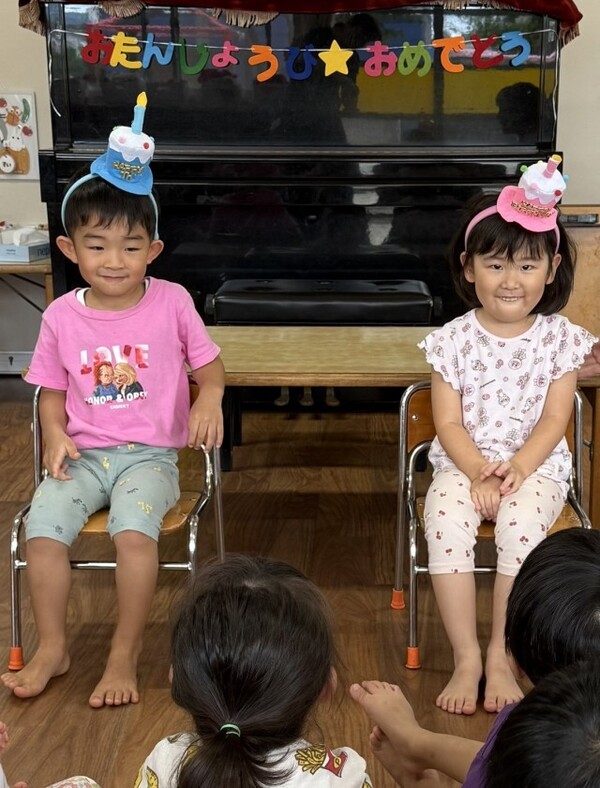 8/28 8月生まれの誕生会が行われました。クラスのお友だちにお祝いをしてもらいペープサートを見たり製作等を行なったり、楽しい時間を過ごしました。大好きなお友だちにプレゼントをもらい特別な1日になりました。給食・おやつも最高! おかわりもしました。