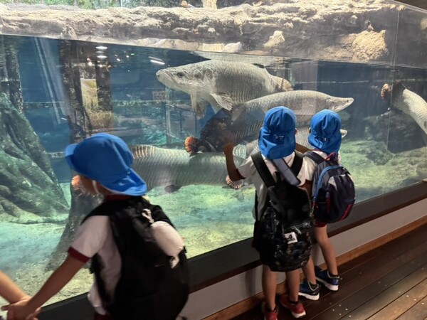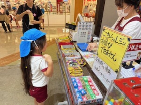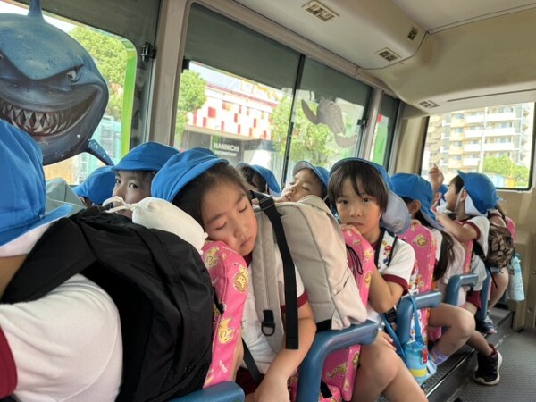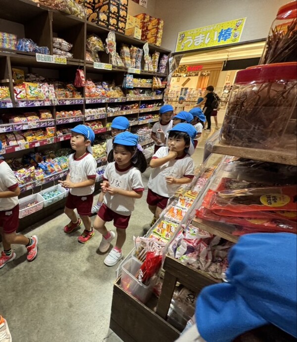 9/26 年長児がとても楽しみにしていた社会見学に行きました。路線バスに乗り水族館に着くと水路のイルカショー プールのイルカショー タイミングが良くて2回楽しむことができてイルカ博士になりました。イオンの雑貨屋ではお仕事見学・駄菓子屋で好きなお菓子を選んでお金を払いお釣りももらいました。自分で買ったお菓子はとてもおいしいでした。楽しい思い出がまた増えました。