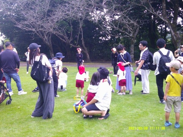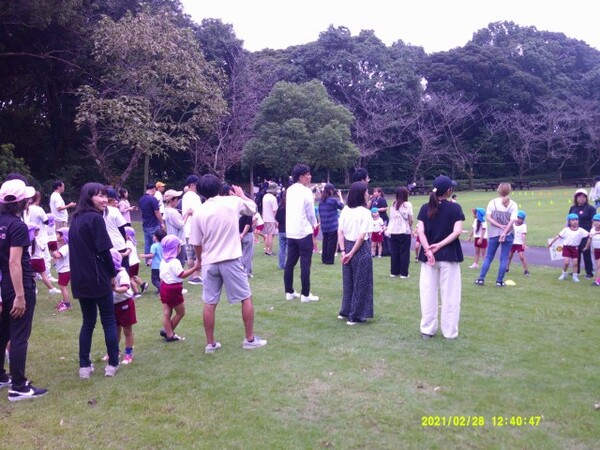 10/18 天気にも恵まれ平川動物で親子遠足が行われました。 お友達やお父さんお母さんと一緒に動物を見たり、クイズや体操等を楽しみました。年中・年長組はボール渡しゲームを行いましたが、保護者の素晴らしいチームワークに小学生・職員チームは歯が立たず完敗でした。