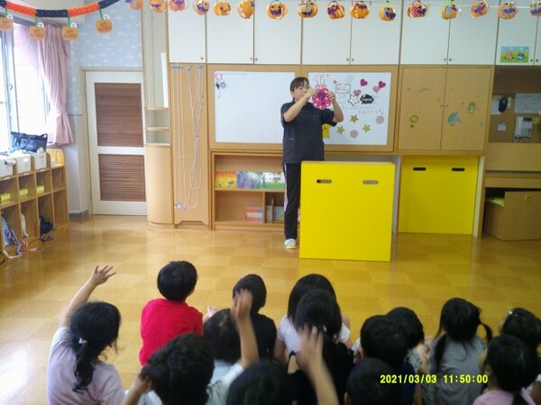 9/24 9月生まれの誕生会が行われました。クラスのお友だちの前に立ち、インタビューに答えたり・歌を歌ったり主役となれる日です。ちょっぴり恥ずかしいでしたが、また一つお兄さん・お姉さんになることが出来て、とても嬉しいでした。エプロンシアターやシルエットクイズも楽しかったです。